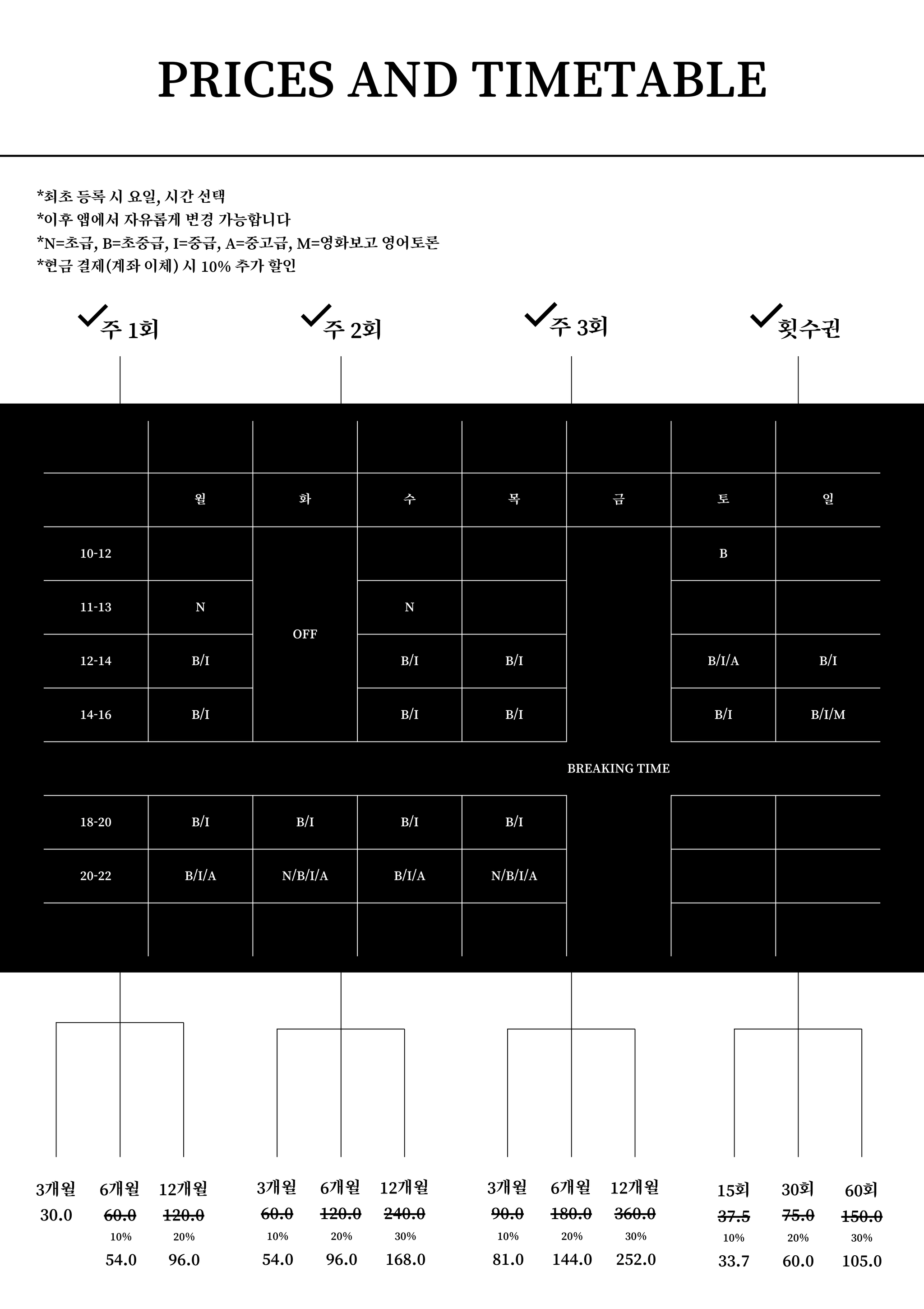 prices and timetable